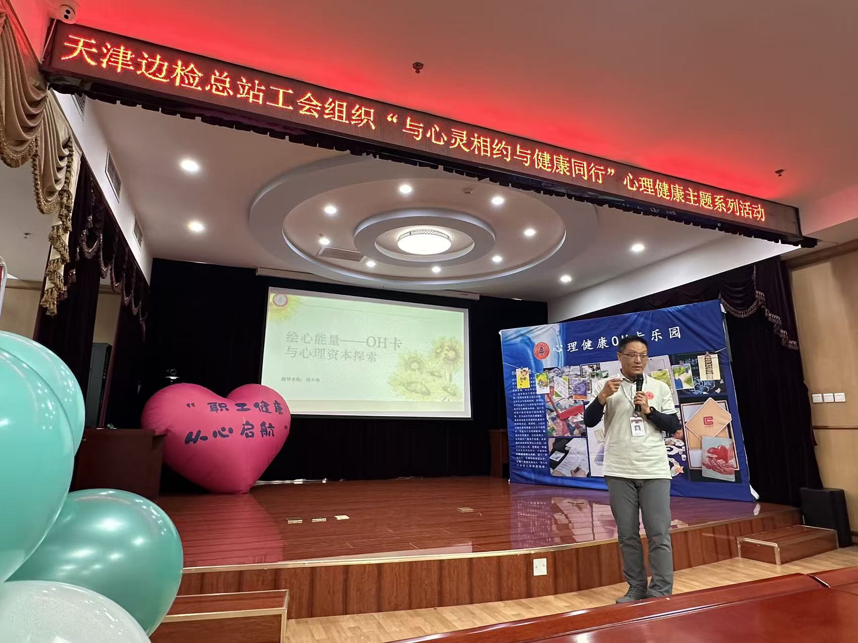 10月17日上午,全国职工心理健康服务中心天津分中心(以下简称“天津分中心”)在东港出入境边防检查站举办了一场别开生面的“OH 卡引梦·催眠逸心”心理健康团辅活动。此次活动意在采用新颖独特的心理辅导手法,为民警们构筑一座通往心灵深处、促进自我认知与探索的桥梁,帮助他们获得心灵层面的抚慰与自我提升。