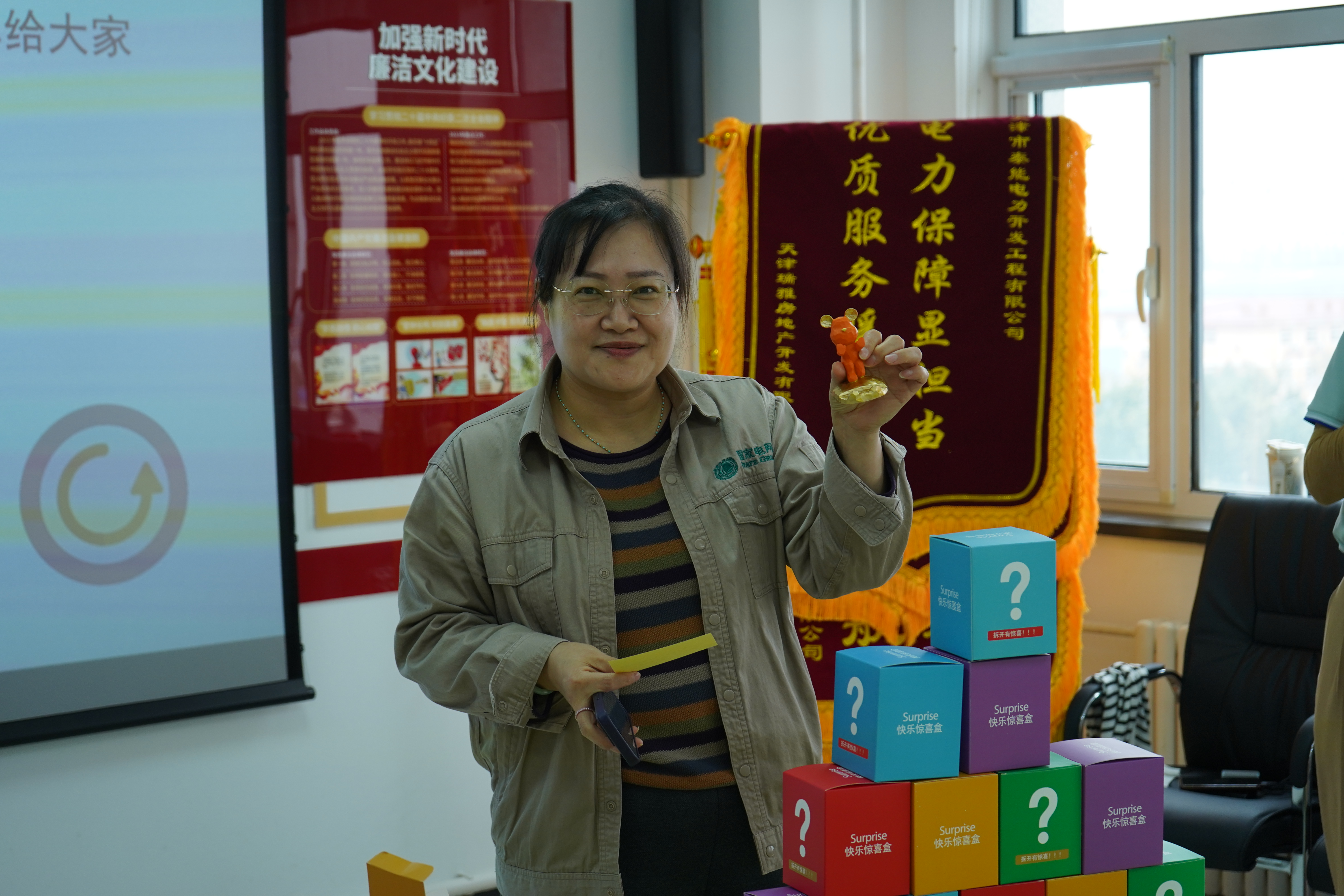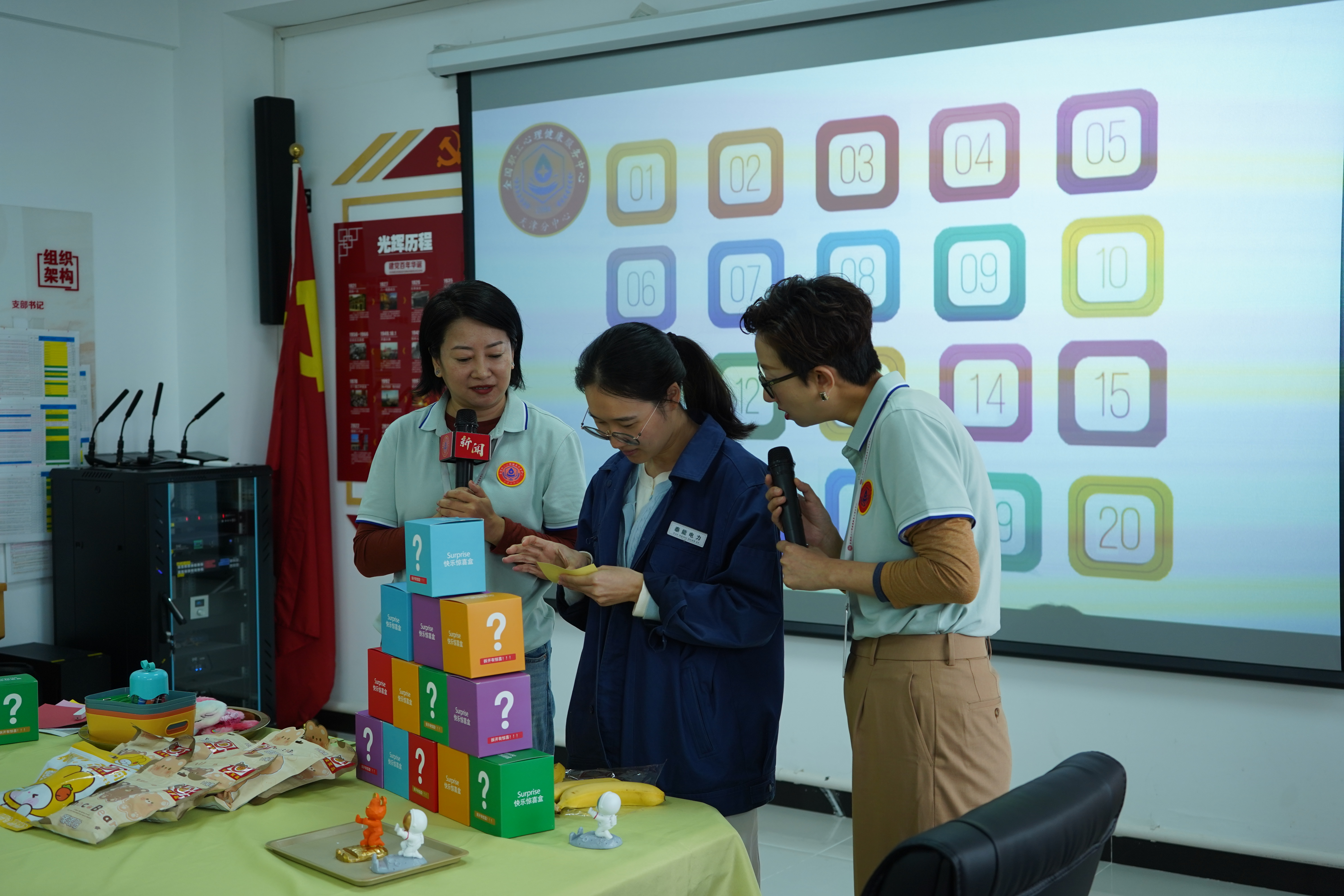 10月24日上午,全国职工心理健康服务中心天津分中心(以下简称“天津分中心”)联合国网天津电力公司城南供电分公司工会,成功在天津市泰能电力开发工程有限公司举办了以“盲盒趣动 心悦飞扬”为主题的心理健康主题活动。