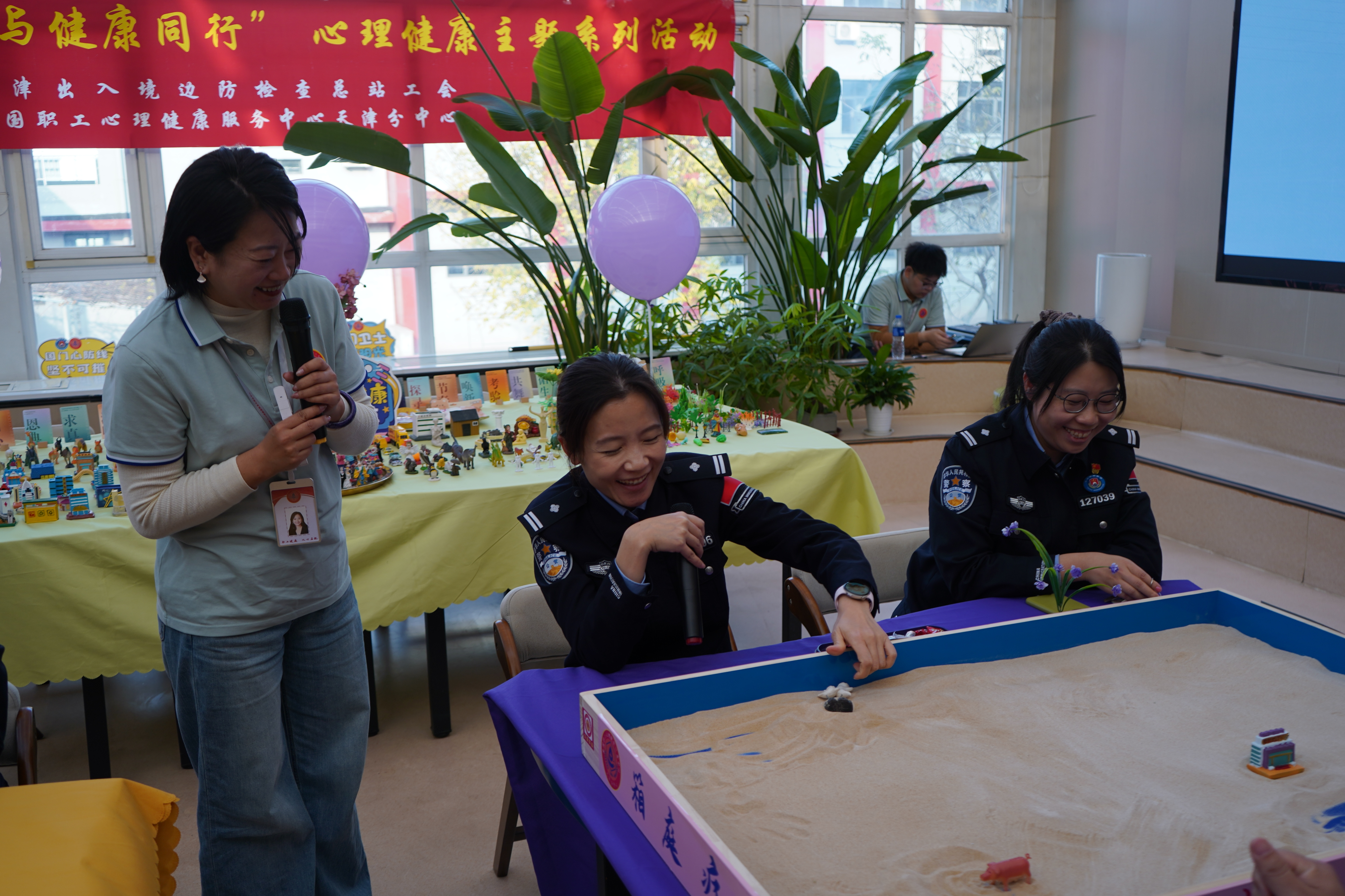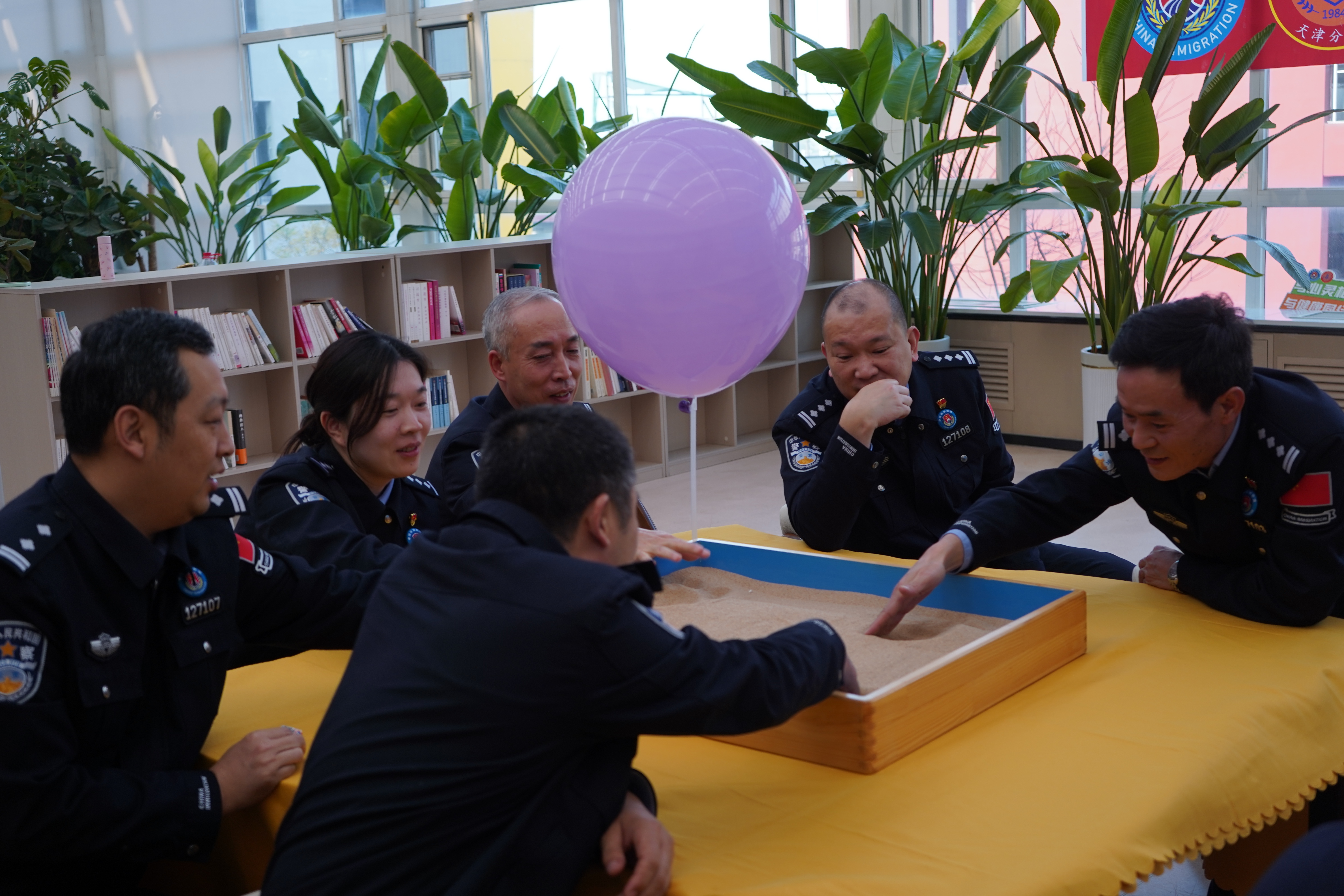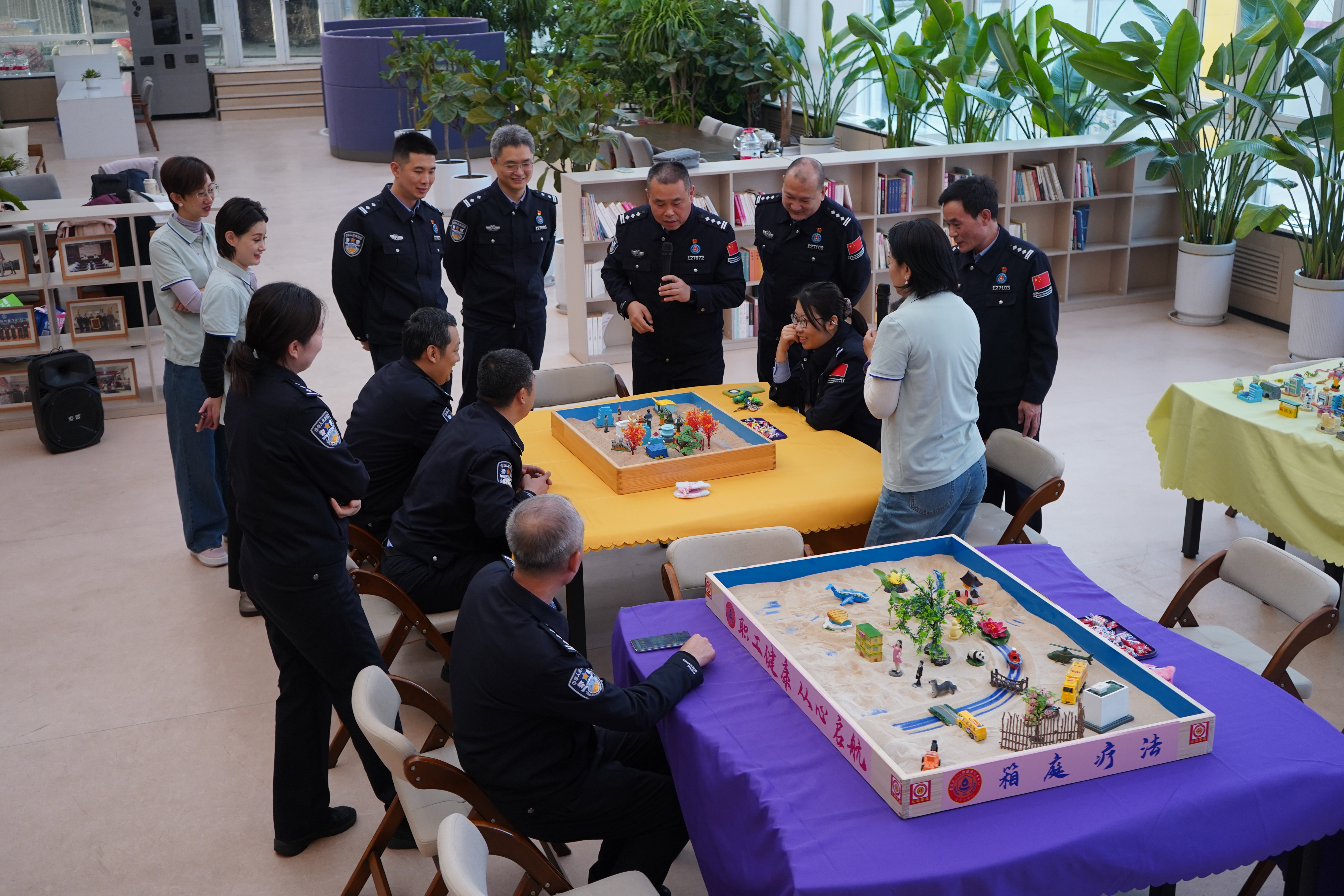 11月11日下午,全国职工心理健康服务中心天津分中心(以下简称“天津分中心”)联合南疆出入境边防检查站,成功举办了一场别开生面的“沙盘乐游 心康共进”心理健康团辅活动。此次活动以沙盘治疗为载体,旨在通过沉浸式、互动式的体验,为民警们提供一次心灵深处的探索与疗愈之旅,为警队心理建设注入新的活力。