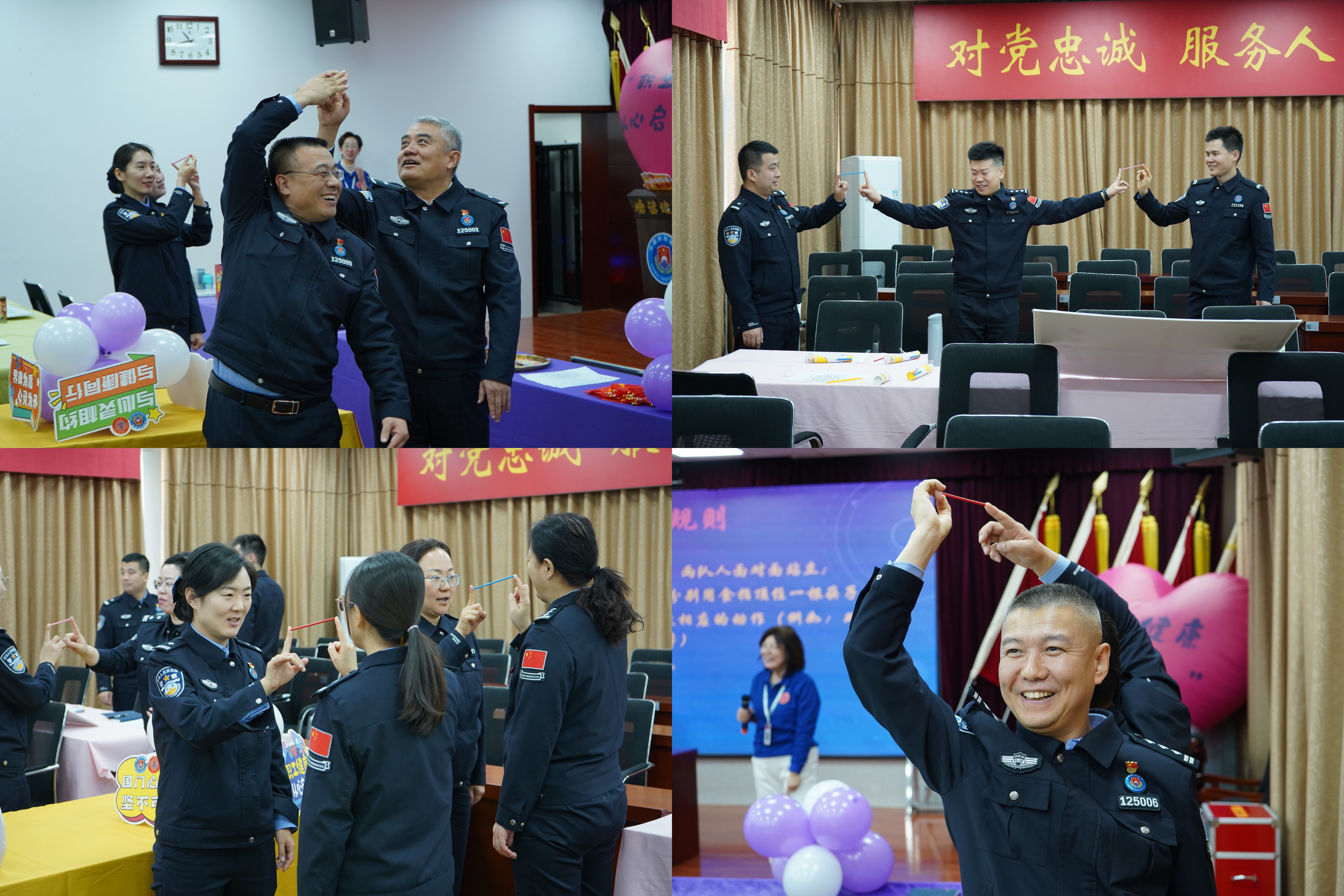 活动伊始,以一场别开生面的“破冰游戏——食指神功”拉开序幕。民警们被分成两组,面对面站立,用食指顶住一根筷子,并根据口令完成一系列动作,如双手向上举、向左转、蹲下等。这一环节不仅迅速拉近了民警之间的距离,还激发了大家的参与热情。