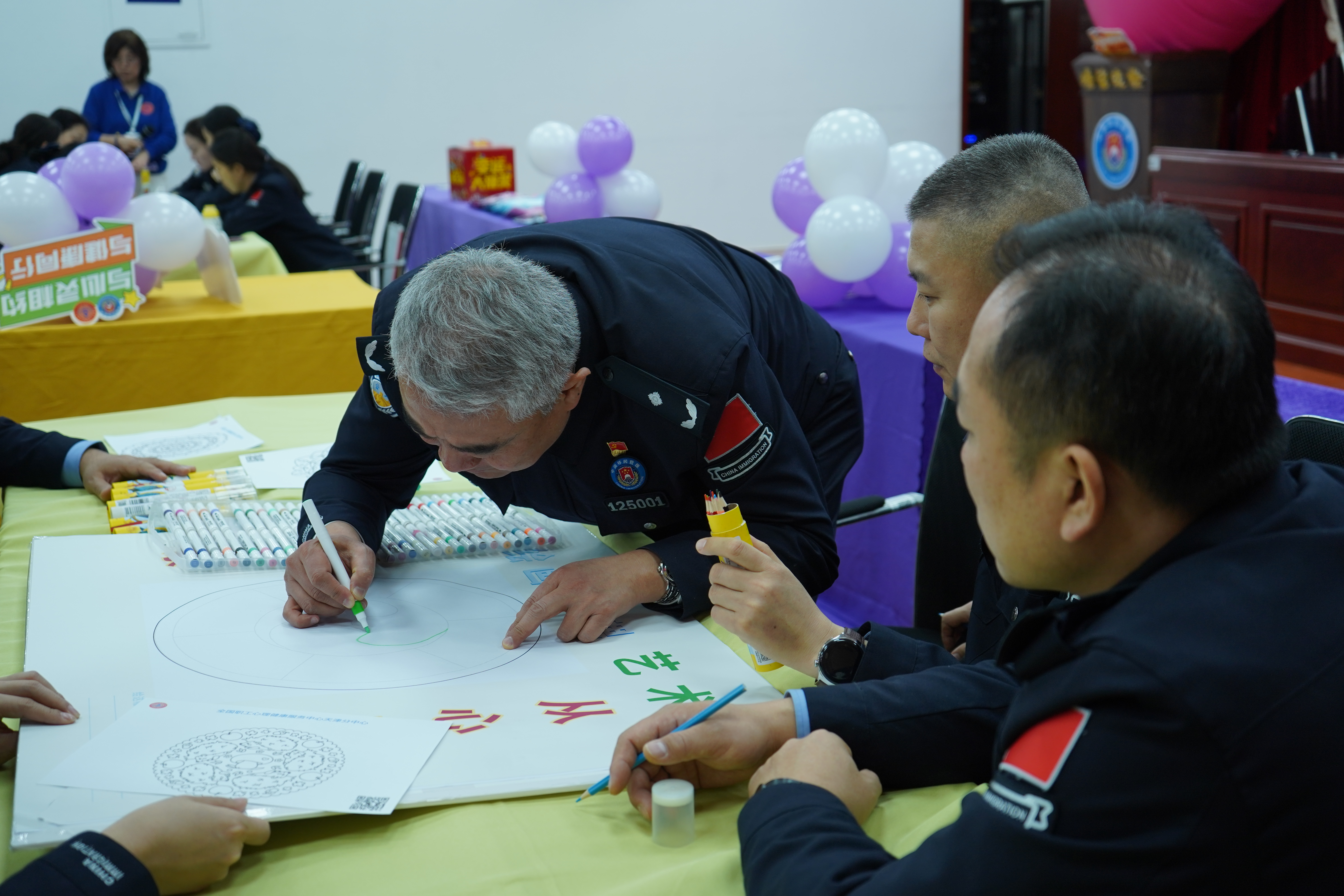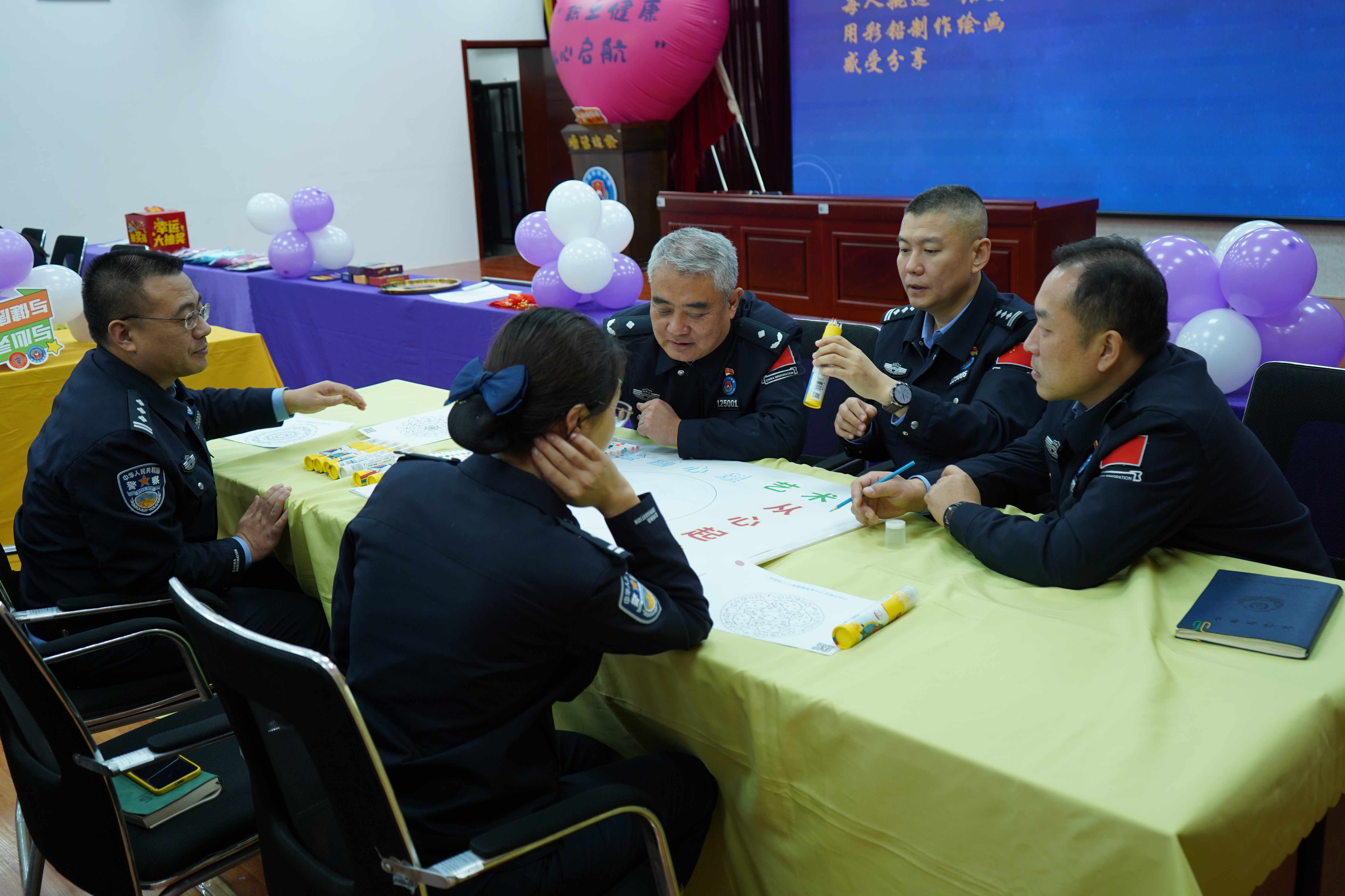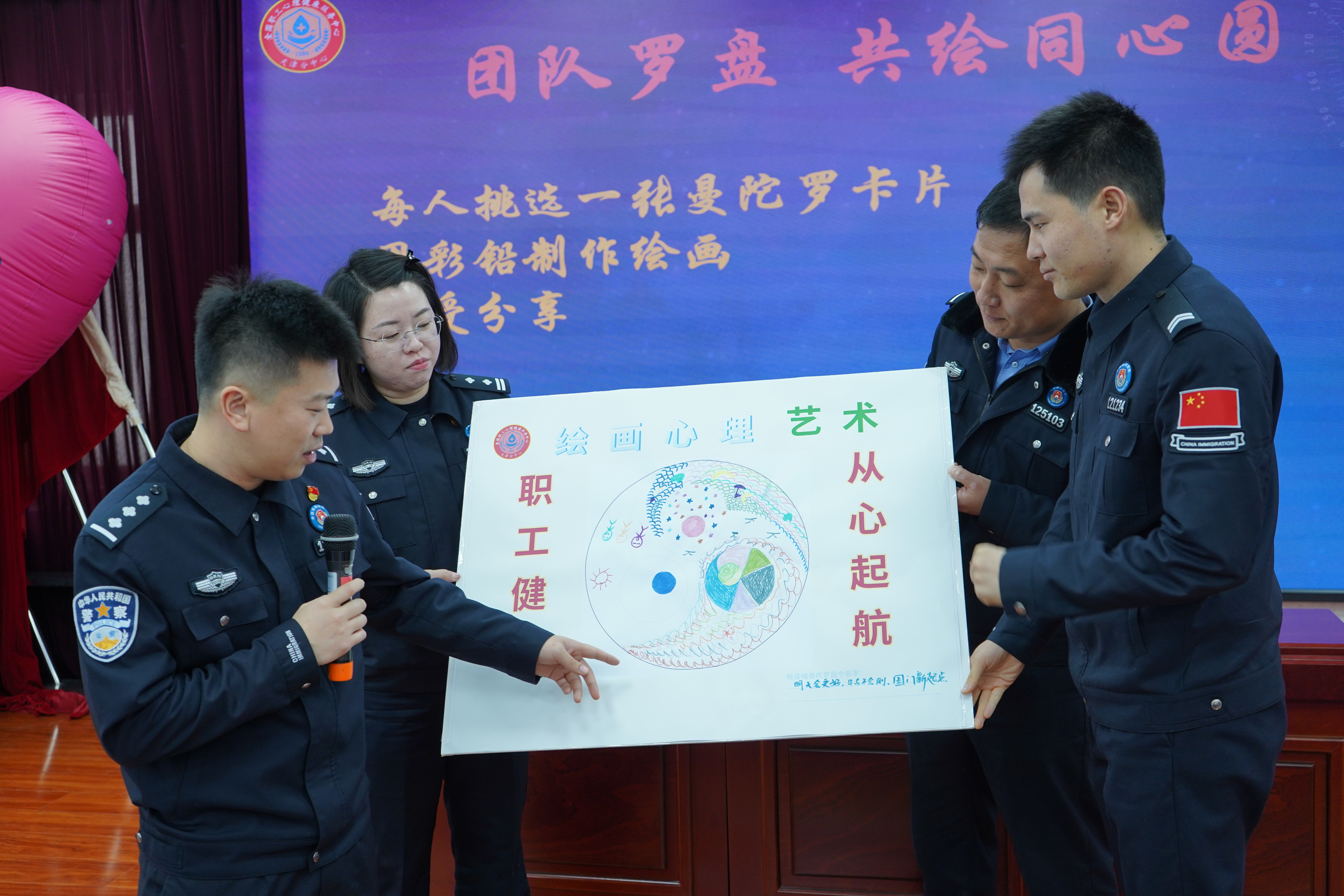 12月11日上午,全国职工心理健康服务中心天津分中心(以下简称“天津分中心”)携手塘沽出入境边防检查站,成功举办了一场以“绘彩舒心 赋能团队”为主题的心理健康活动。此次活动旨在通过创新的心理干预技术和团队合作游戏,为民警提供心理支持,增强团队凝聚力,促进民警的心理健康与团队协作能力。