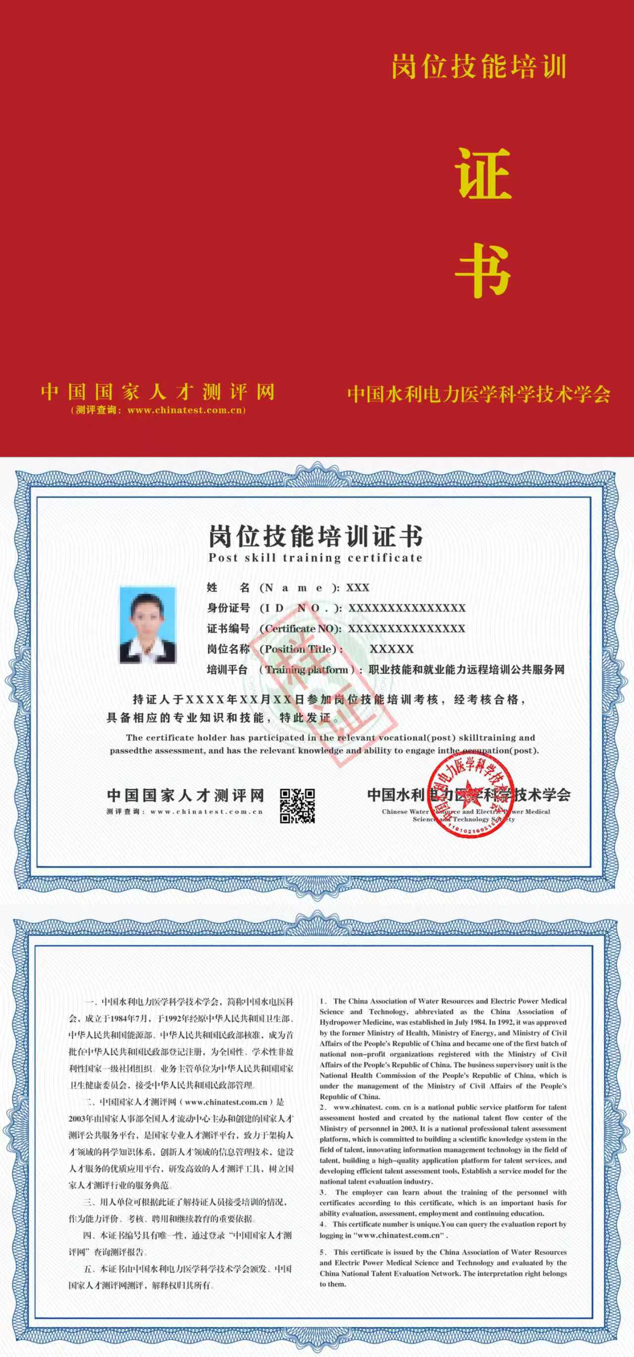 通过线上统考认证的学员,将获得由中国水利电力医学科学技术学会盖章认证的《岗位技能培训证书》,证书信息可通过中国国家人才测评网官方渠道全国统一查询,具备高权威性与行业公信力。