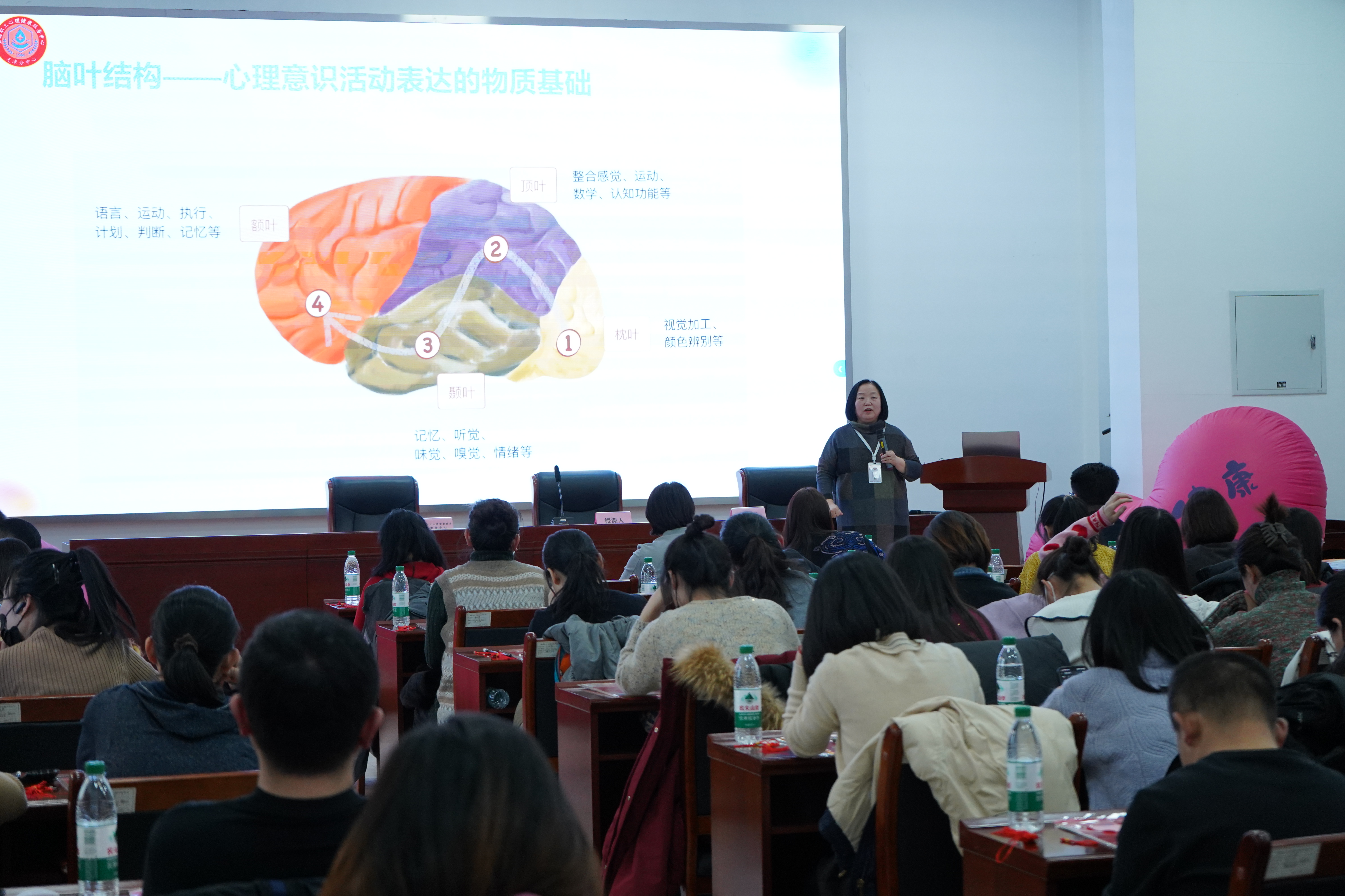 随后,天津分中心资深专家杨俊丽教授以《从非侵入式脑机接口技术看——工会干部压力应对与心理建设实务》为题进行专题授课。杨俊丽教授首先讲解了“12项大脑思维绽放能力”创新体系,该体系基于对大脑认知规律的深入探索,涵盖信息处理、情绪调节等模块,通过科学训练提升职工认知效能、情绪管理能力与创新解决复杂问题的能力。在讲解中,杨教授从心脑科学角度,结合讲座主题,深入剖析大脑运作机制对心理健康的重要影响,并结合工会干部日常工作压力来源,运用心脑科学原理分享实用减压方法与情绪释放技巧,帮助工会干部建立积极心态、平衡工作生活,从而更有效地投入到服务职工心理健康的工作当中。