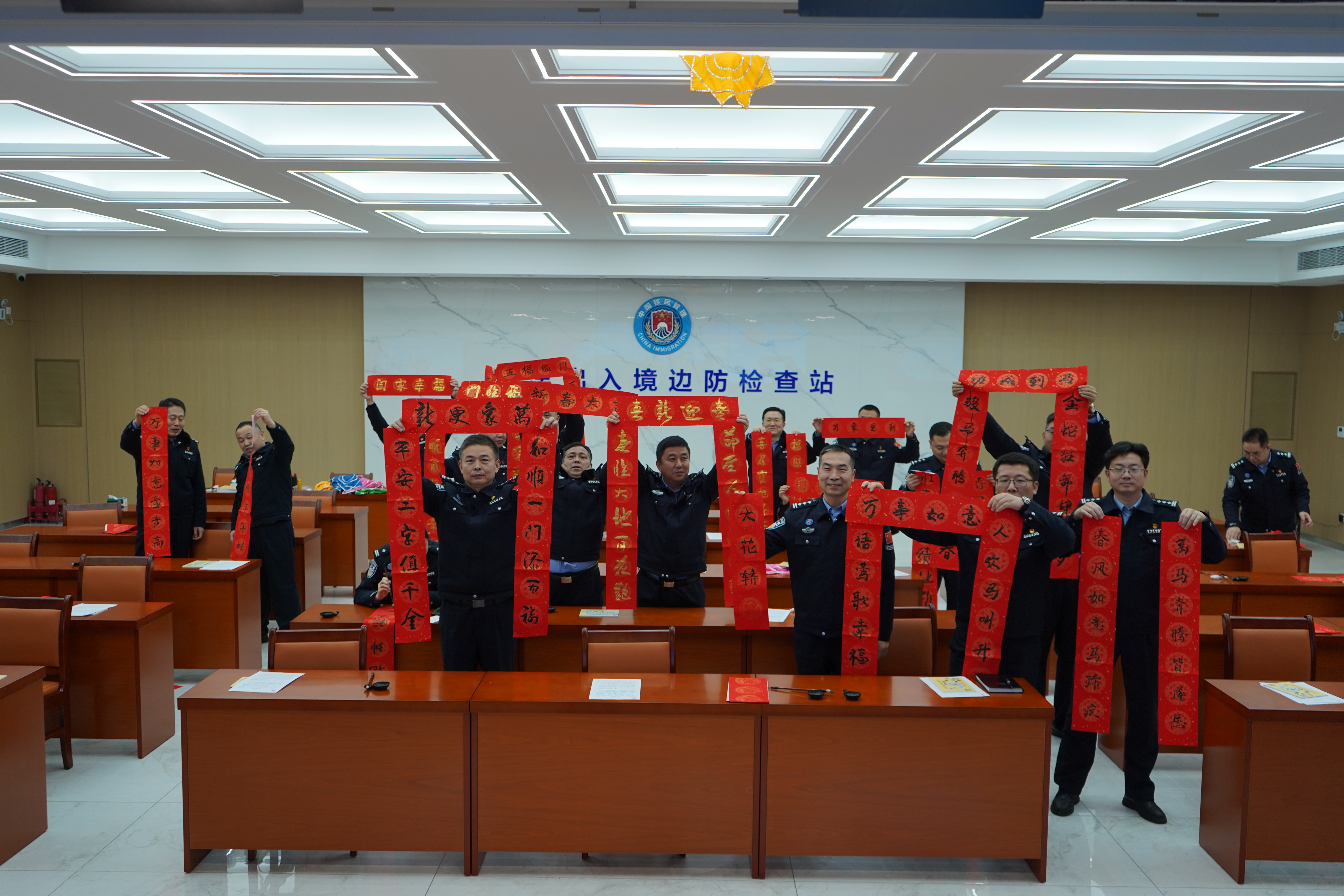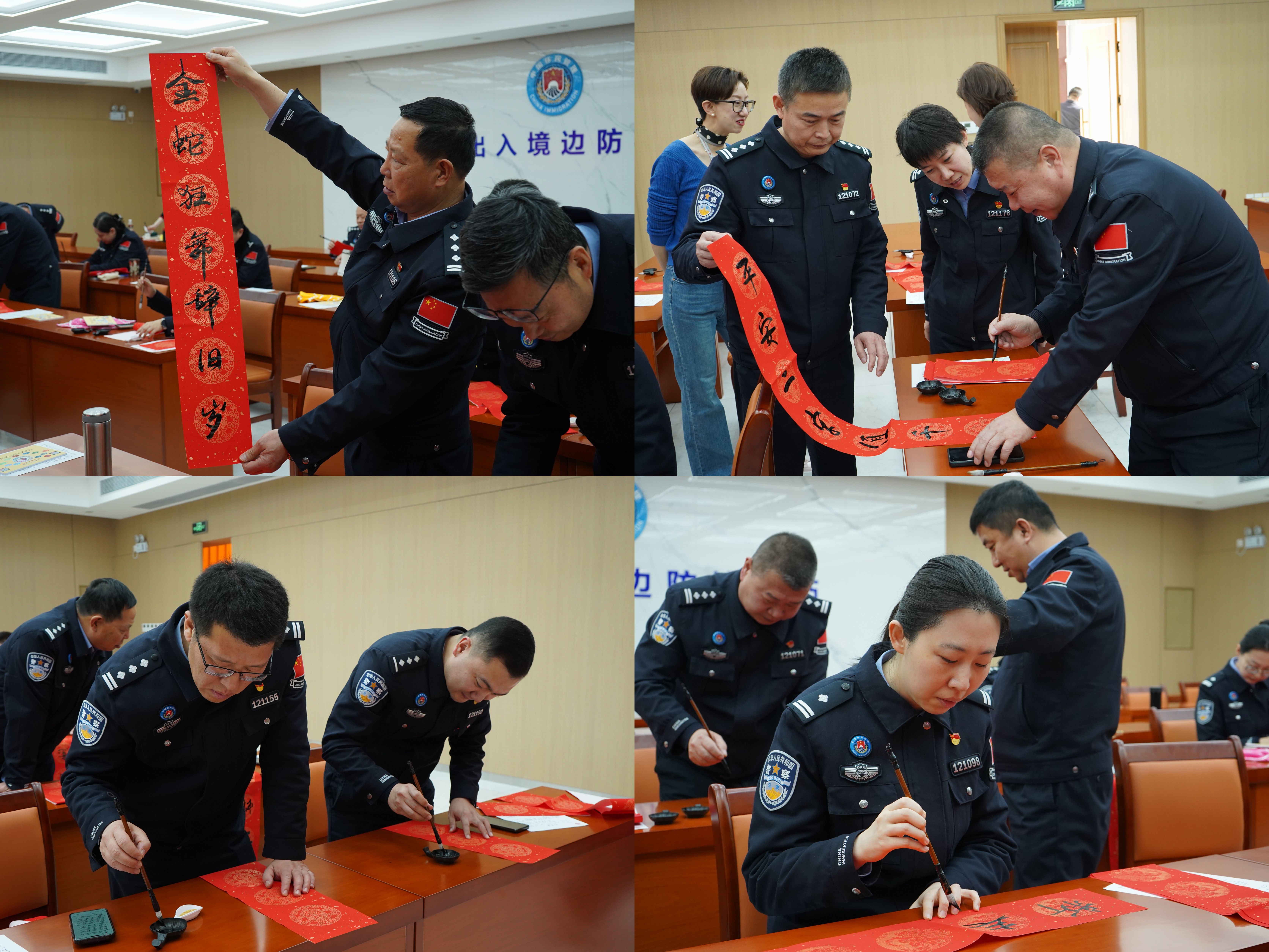 活动尾声的“写春联送祝福”环节,为整场活动画上了圆满的句号。民警们挥毫泼墨,书写下一幅幅寓意吉祥的春联,互赠祝福,传递着集体的温暖与力量。在传统年俗的熏陶下,民警们深刻感悟到了文化传承的深层价值,进一步增强了团队凝聚力与归属感。