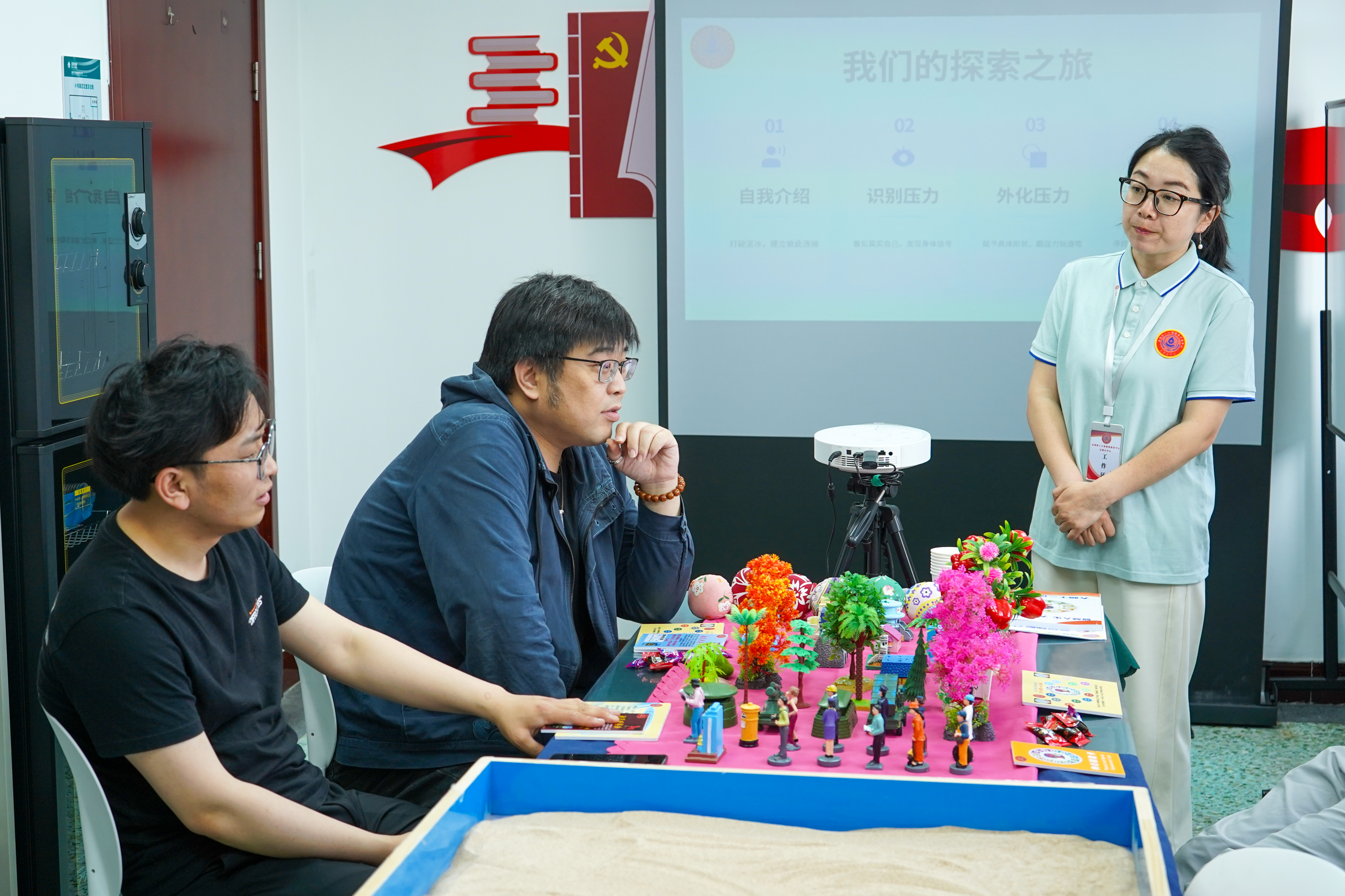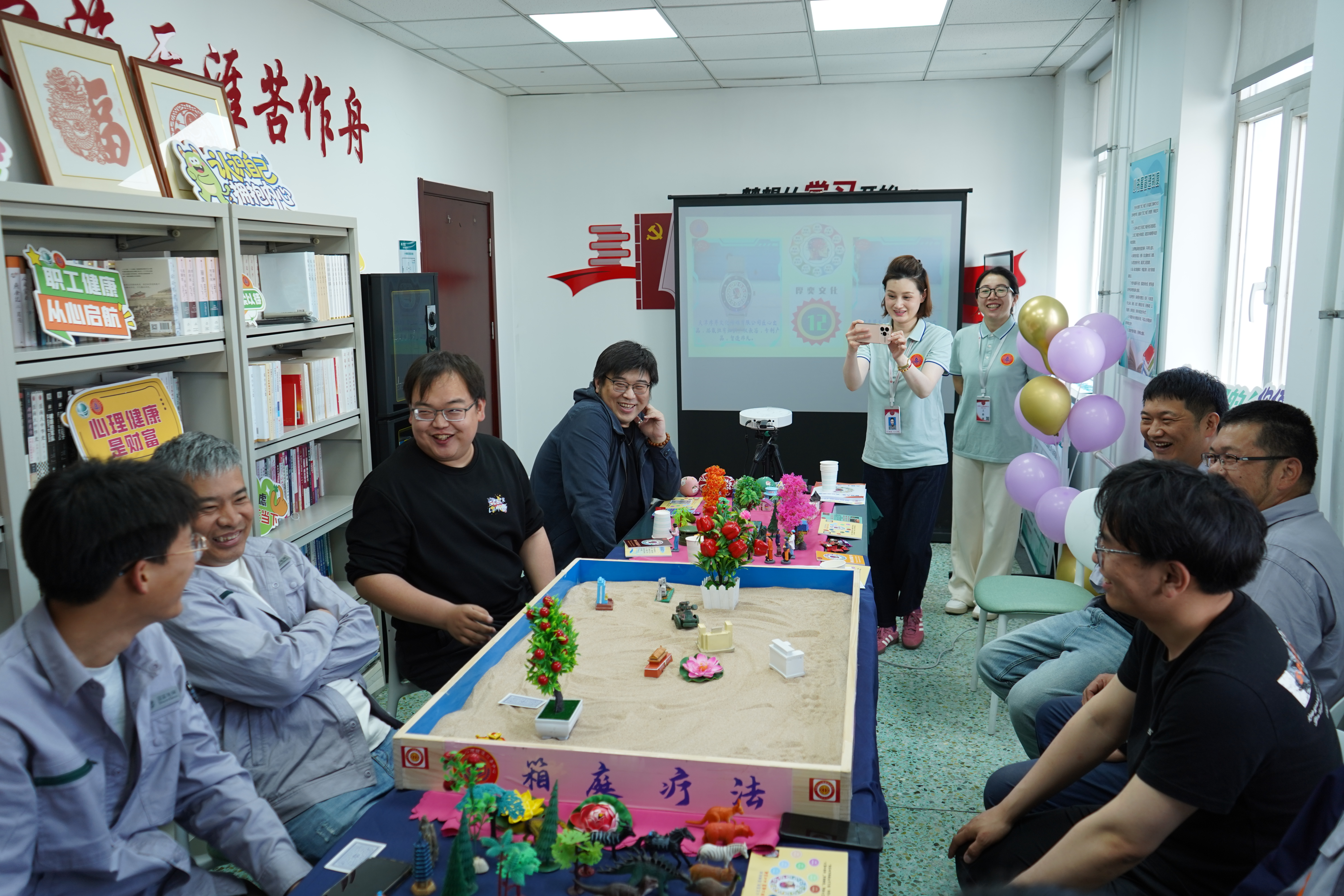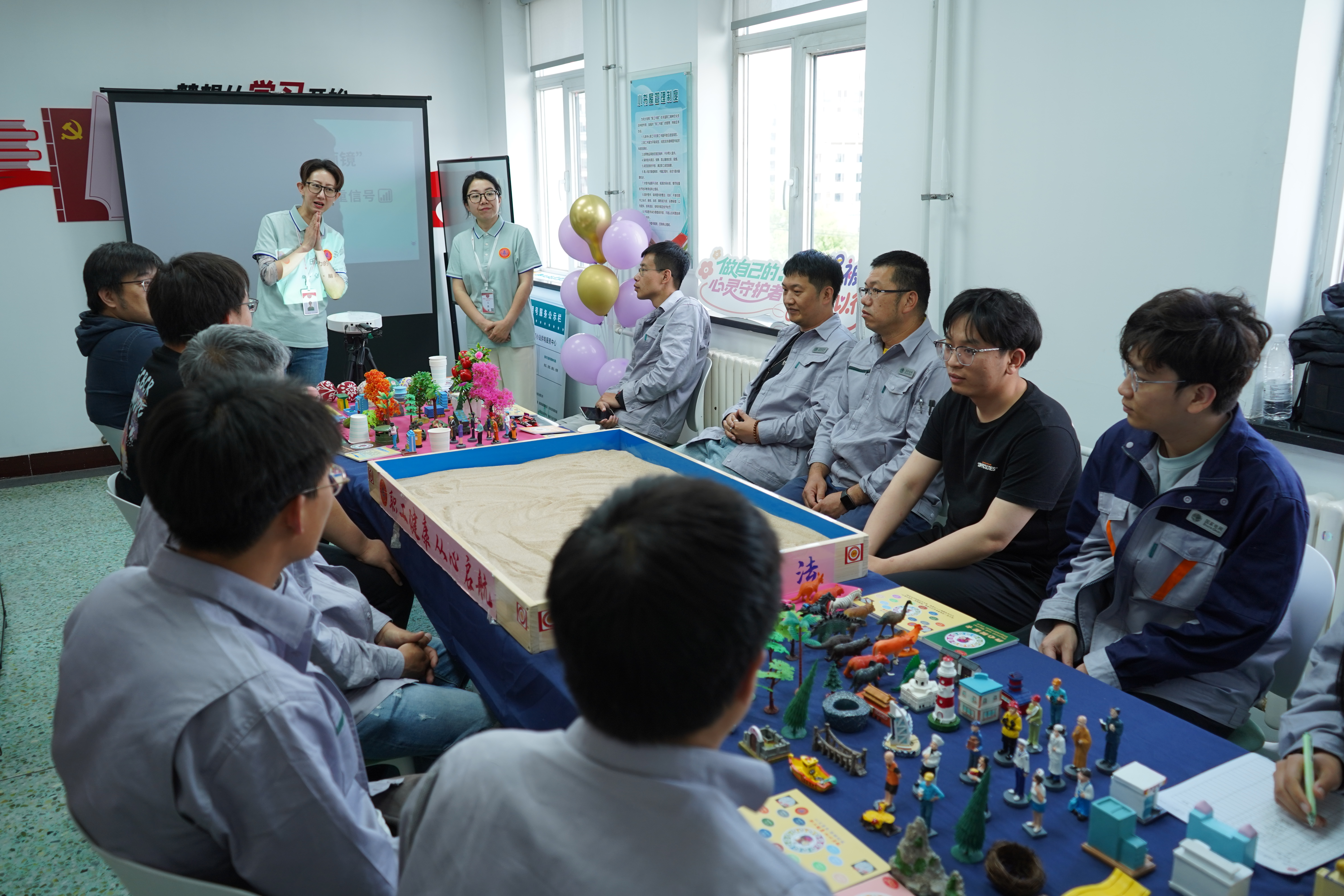 天津分中心围绕大脑12项思维绽放能力,以敏锐观察力为核心展开活动。“识别压力”环节,职工们借助彩虹赋能卡,敏锐观察卡片画面,从中发现自身压力状态与身体信号,看清真实自我。“外化压力”环节趣味十足,职工们通过沙盘游戏,挑选物件或创造场景代表压力,将抽象压力具象化,与压力轻松“互动”;随后再用沙盘呈现最放松开心的状态,形成鲜明对比。